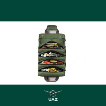 Oprolbare gereedschapstas met 6 afsluitbare vakken.