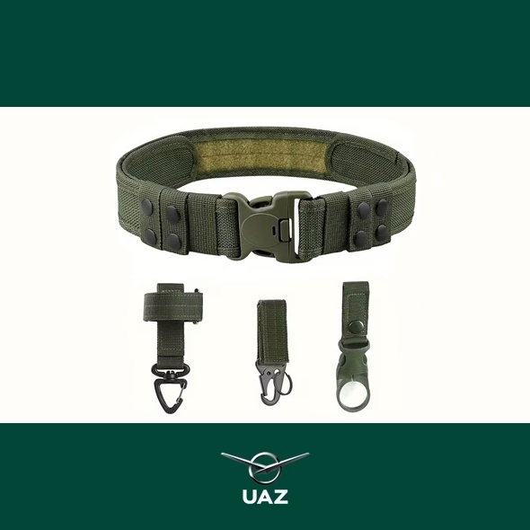 4-delige tactische riem met snelsluiting uit oxford stof. Tactische riem met organizer-clip, sleutelhanger en bidonhouder-clip.