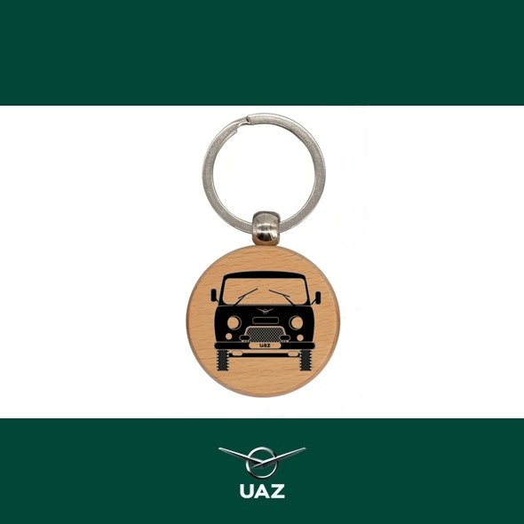 Sleutelhanger van hout met opdruk UAZ Bukhanka.