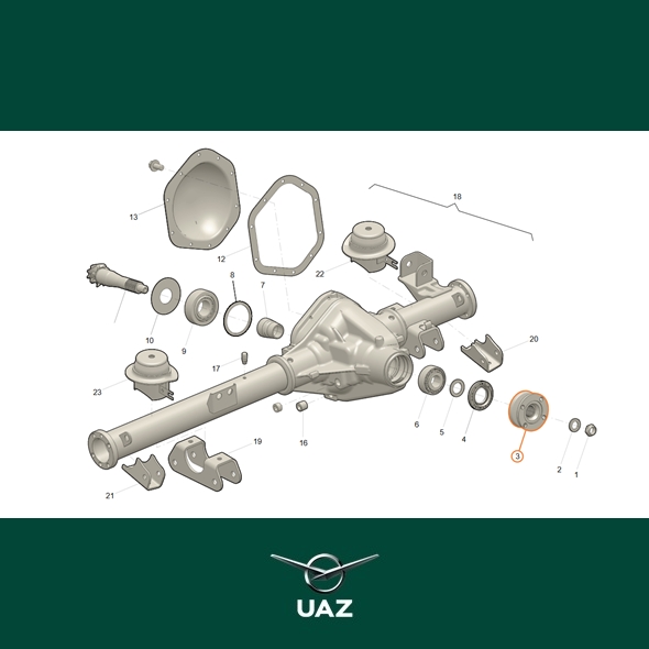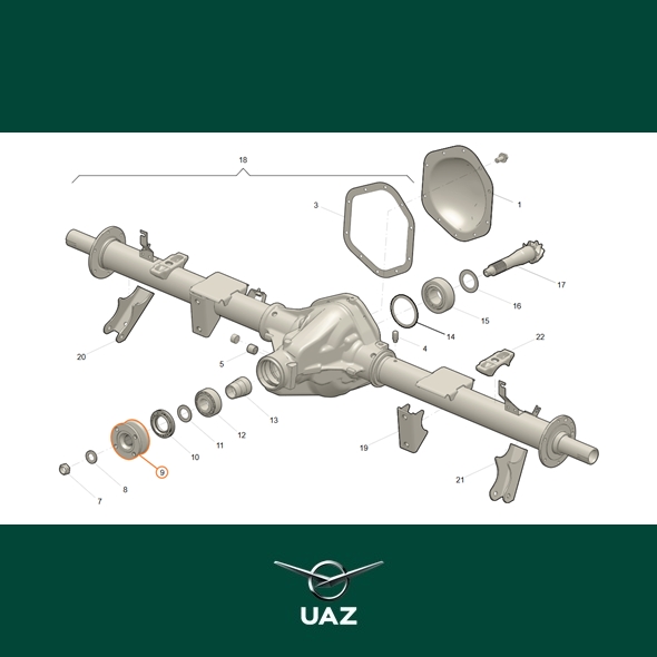 Cardanasflens voor het differentieel van de voor- of achteras. Geschikt voor alle uitvoeringen van de UAZ modellenreeks met Spicer assen en bouwjaar tot 06/2018.