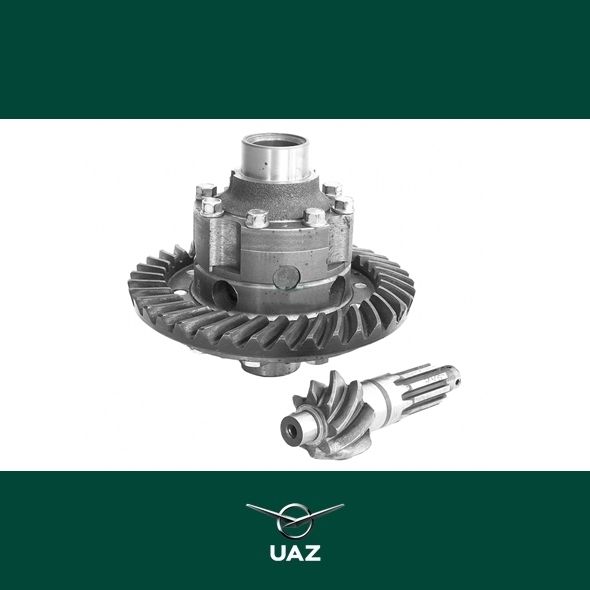Differentieel met kroon- en pignonwiel. Geschikt voor alle uitvoeringen van de UAZ Hunter en de UAZ SGR modellenreeks met Timken / Hybrid assen en overbrengingsverhouding 4,625.