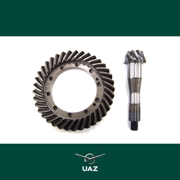 Kroon- en pignonwiel. Geschikt voor alle uitvoeringen van de UAZ modellenreeks met Spicer assen en overbrengingsverhouding van 4,625.