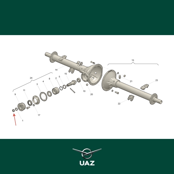 Kroonmoer voor het differentieel van de timken brug. Geschikt voor alle uitvoeringen van de UAZ Hunter en de UAZ SGR modellenreeks met Timken assen.