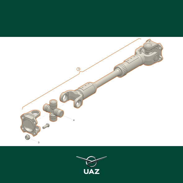 Cardanas voor de aandrijving van de vooras. Geschikt voor alle uitvoeringen van de UAZ SGR modellenreeks met Timken assen en bouwjaar vanaf 2013.
