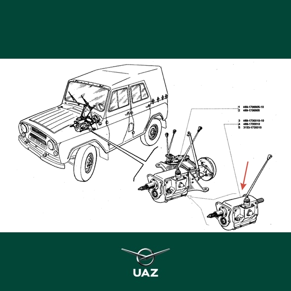 Volledig gesynchroniseerde versnellingsbak met 4 versnellingen. Geschikt voor alle uitvoeringen van de UAZ 469 modellenreeks.