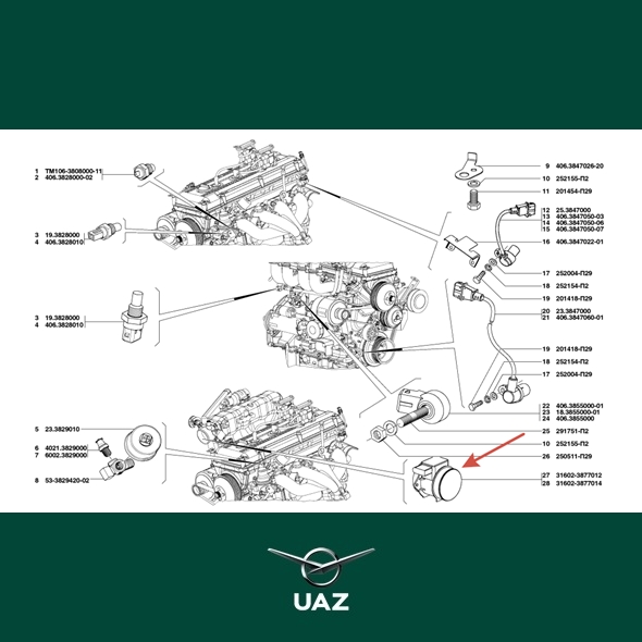 Luchtmassameter. Geschikt voor alle uitvoeringen van de UAZ modellenreeks met MIKAS 7.1 en 7.2 motormanagement ECU.