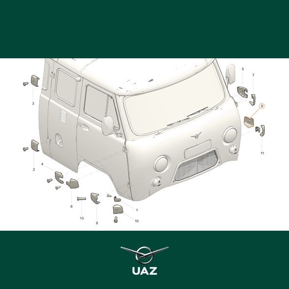 Protective cap for the lower driver's door hinge on the right. Suitable for all versions of the UAZ SGR model range.