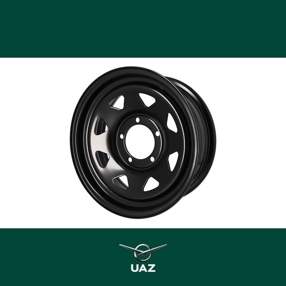 Stalen velg in de kleur zwart. Geschikt voor alle uitvoeringen van de UAZ Hunter en de UAZ SGR modellenreeks.