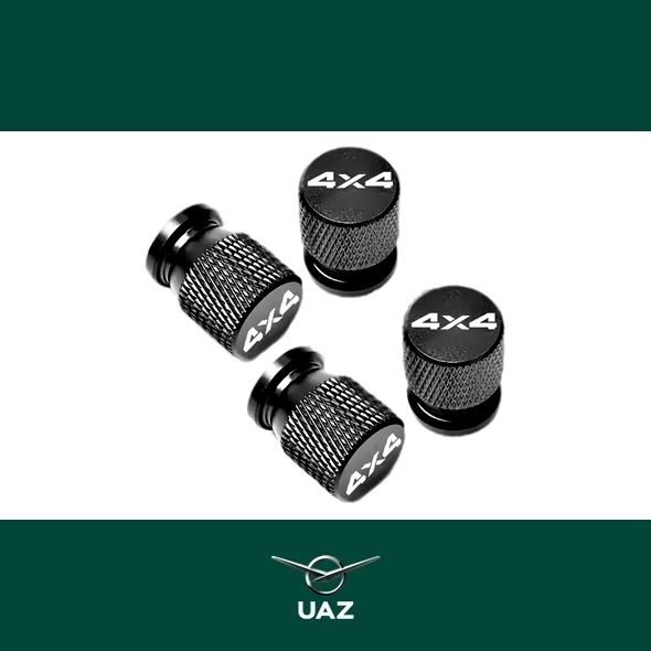 Metalen ventieldoppenset met 4X4 opdruk. Geschikt voor alle uitvoeringen van de UAZ modellenreeks.