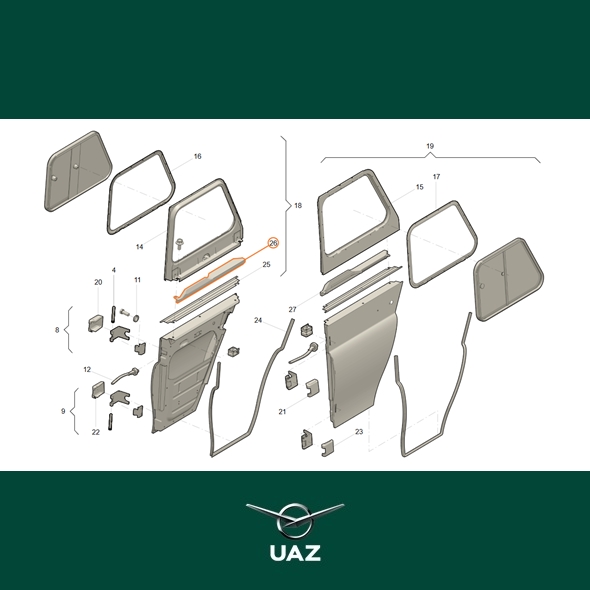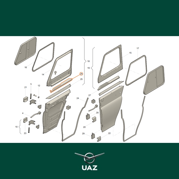 Armleuning voor de portieren aan de aan de bijrijderskant. Geschikt voor alle uitvoeringen van de UAZ Hunter modellenreeks.