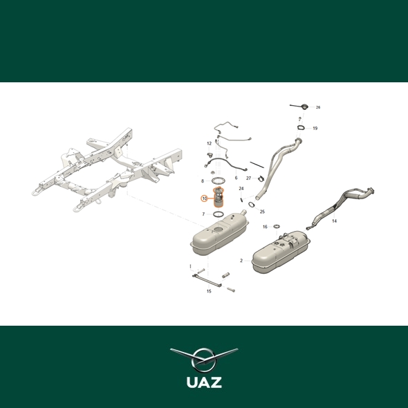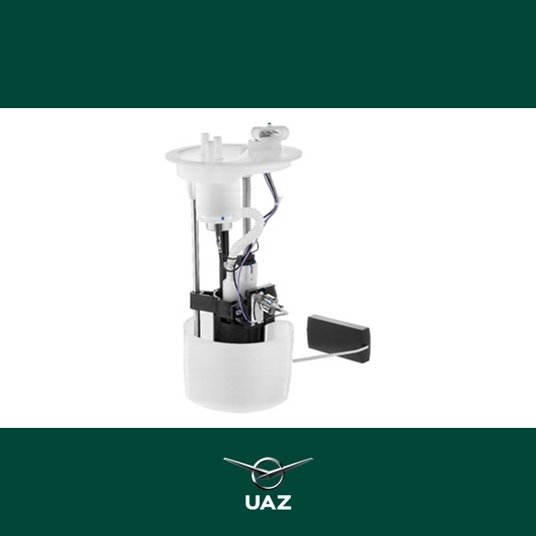 Elektrische brandstofpomp. Geschikt voor alle uitvoeringen van de UAZ Patriot en de UAZ Pickup modellenreeks met bouwjaar vanaf 2008 tot 2016 en twee brandstoftanks.