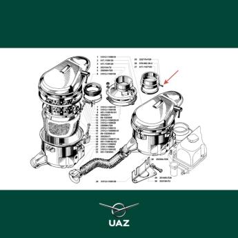 Adapter voor de luchtfilter van carburateur K-126GU. Geschikt voor alle uitvoeringen van de UAZ 452 en de UAZ 469 modellenreeks met UMZ-4178 of 4179.10 motor en met carburateur K-126GU.