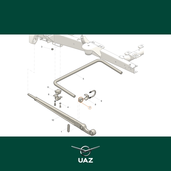 Ophangrubber voor de stabilisatorstang. Geschikt voor alle uitvoeringen van de UAZ Hunter modellenreeks.
