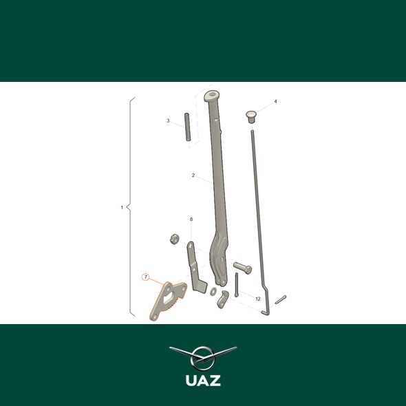 Vertand sector voor de hendel van de handrem. Geschikt voor alle uitvoeringen van de UAZ SGR modellenreeks.