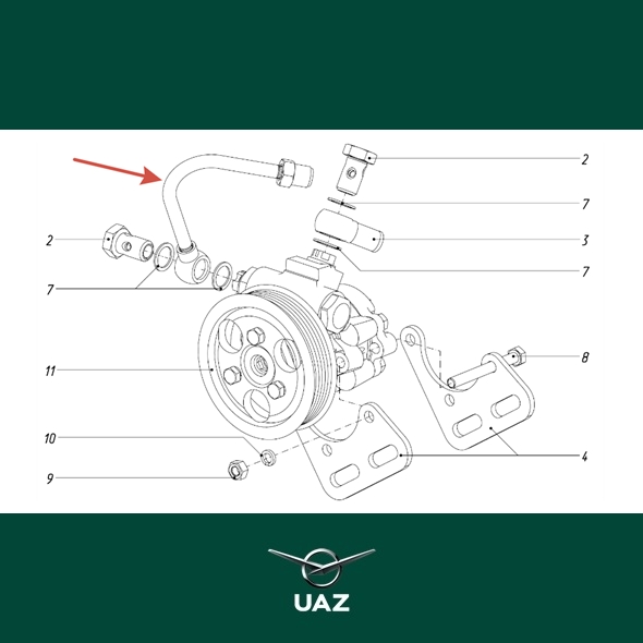 Aansluitleiding voor de pomp van de stuurbekrachtiging. Geschikt voor alle uitvoeringen van de UAZ SGR modellenreeks.