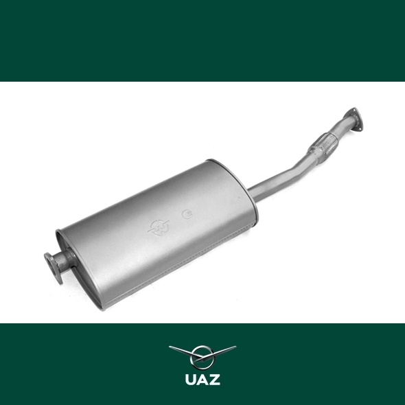 Voorste uitlaatdemper. Heavy duty uitvoering met zinc coating. Geschikt voor alle uitvoeringen van de UAZ Hunter modellenreeks met ZMZ-40904 motor.