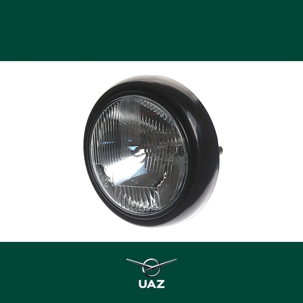 Koplamp met vlak glas (RAUS) en hoogteregeling. Geschikt voor alle uitvoeringen van de UAZ Hunter en de UAZ SGR modellenreeks.